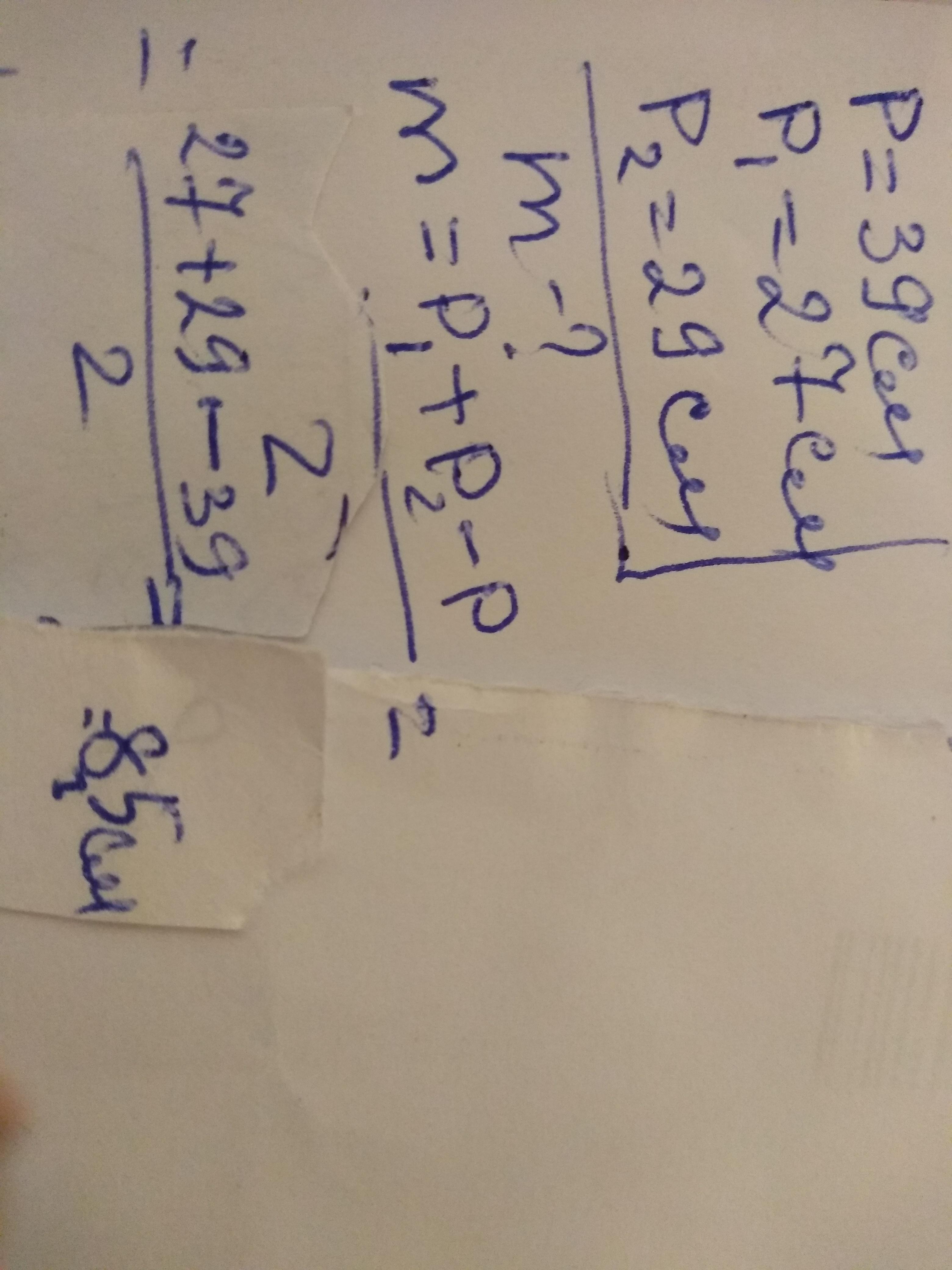 Периметр трикутника АВС дорівнює 39 см. Медіана АМ розбиває його на два трикутники периметри яких дорівнюють 27 см і 29 см. Знайдіть довжину медіани.