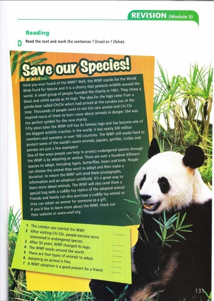 Have you ever heard of the WWF? Well, the WWF stands for the World Wide Fund for Nature and it is a charity that protects wildlife around the world...