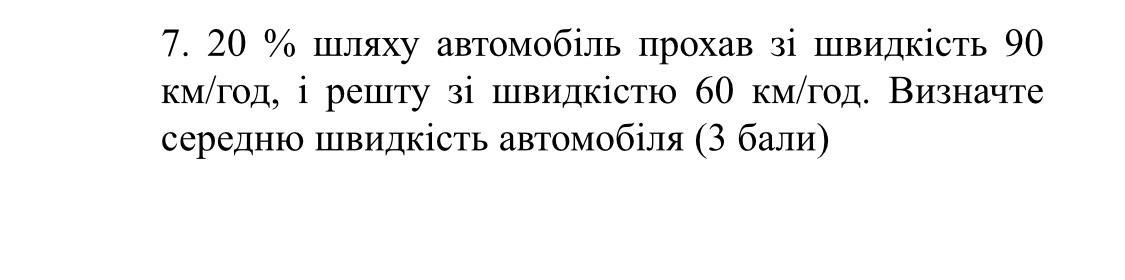 v = S/t = S/(S×(0,2/90 + 0,8/60)) = 1/(0,2/90+0,8/60) ≈ 64,3 км/ч