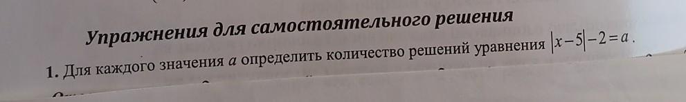 Для каждого уровни упражнение |x-5|-2=a