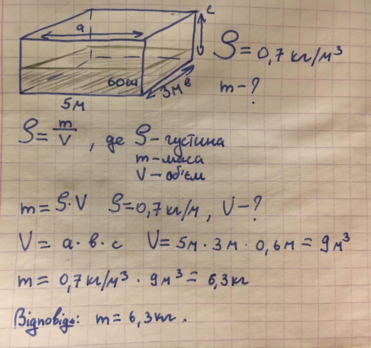 у льох довжиною 5 м і шириною 3 м насипали шар картоплі висотою 60 см яка маса картоплі якщо її густина дорівнює 0,7 кг/м³