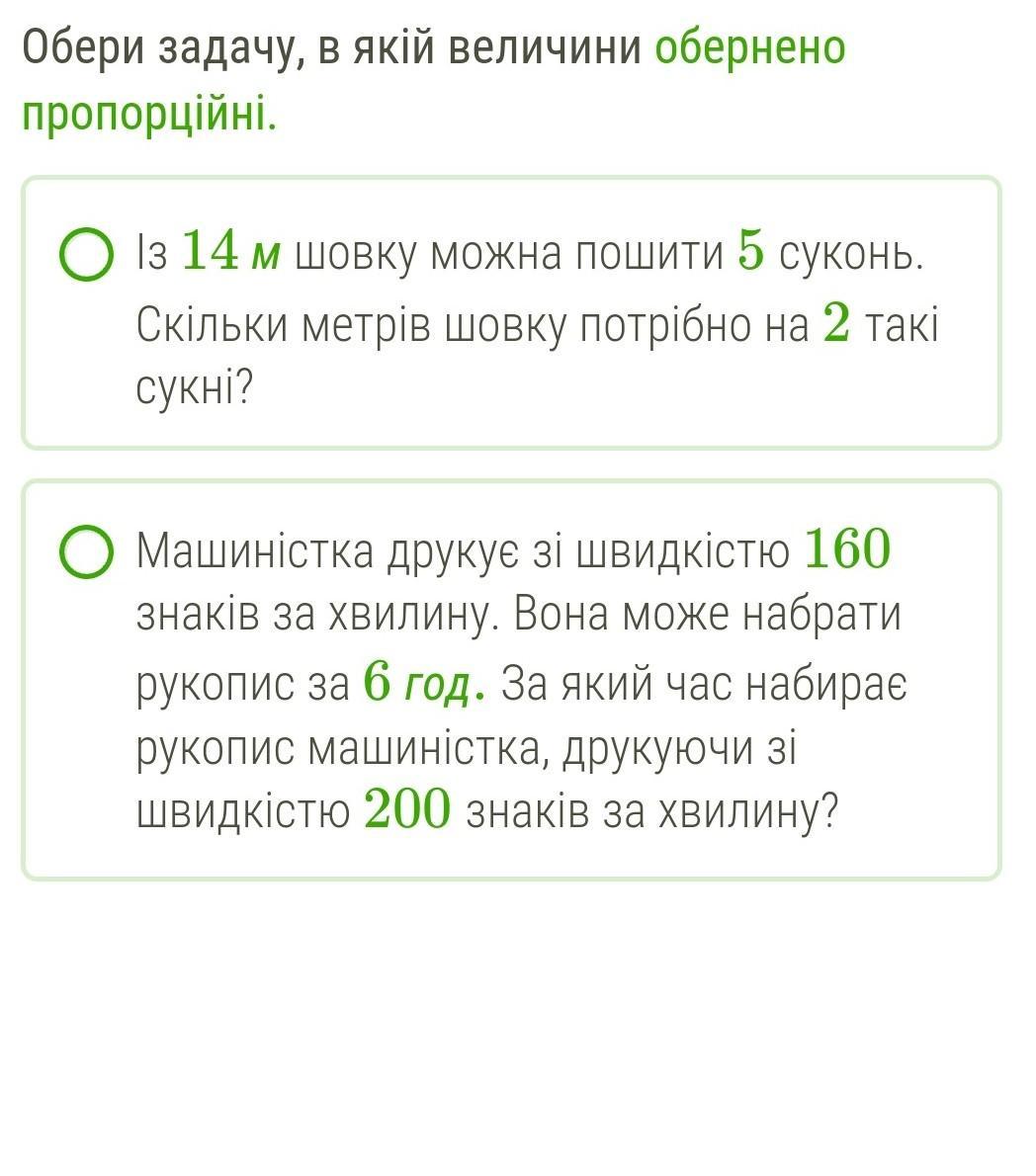Обери задачу, в якій величини обернено пропорцiйнi.