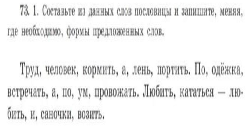 Труд человека кормит, а лень портит.По одежде провожать, а по уму встречать.Любишь кататься-люби и саночки возить