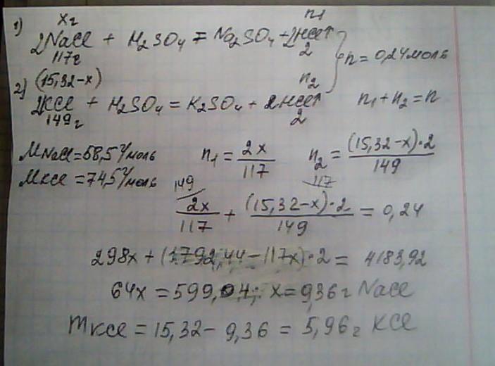 При обработке 41,6 г смеси кристаллических фторида и хлорида калия избытком концентрированной серной кислоты образовалось 14,42л газа (измерено при 20 градусах и 101,3 кПа) Определите массовые доли веществ в смеси.