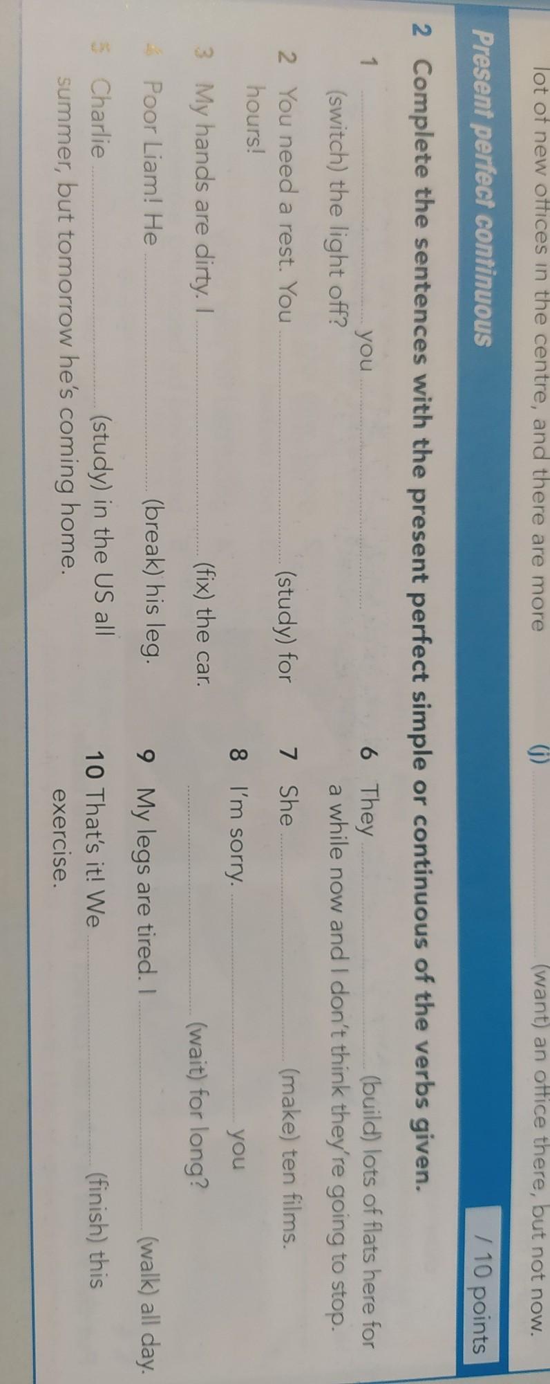 Complete the sentences with the present perfect simple or continuous of the verbs given.