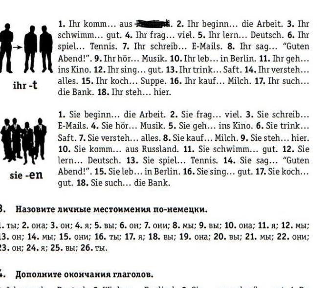 Ihr kommT, Ihr beginnT, Ihr schwimmT и тд
