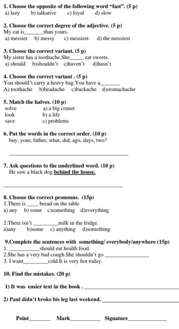 1D 2A 3B 4B 5: Solve Problems, Look A Big Comet, Save a life.