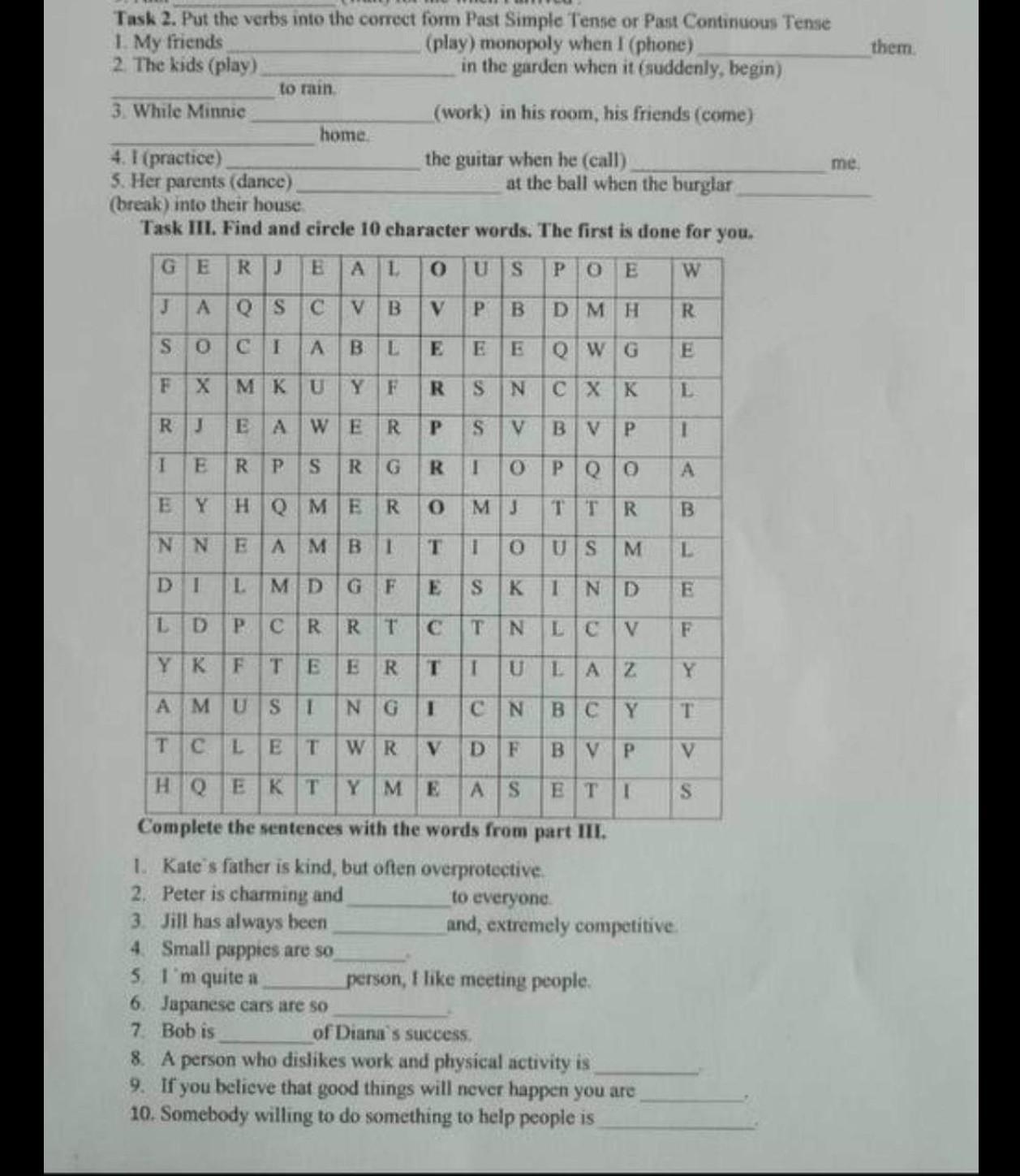 Відповідь: 1. My friends were playing Monopoly when I phoned them. 2. The kids were playing in the garden when it suddenly began to rain. 3. While Minnie was working in his room, his freinds came home. 4. I was practising the guitar when he called me. 5. Her parents were dancing at the ball when burglar broke into their house.
