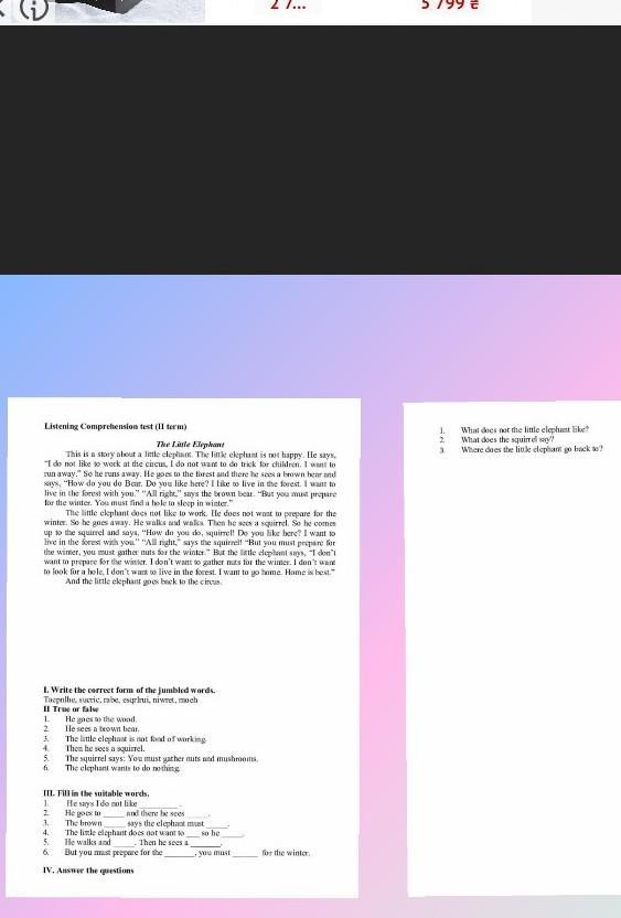 2. The squirrel says that elephant must prepare for the winter and he must gather the nuts.