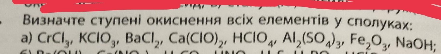 Визначте ступені окиснення всіх елементів у сполуках: a) CrCl3, KClO3, BaCl2, Ca(ClO)2, HClO4, Al2(SO4)3, Fe2O3, NaOH; и пс LINIC II -