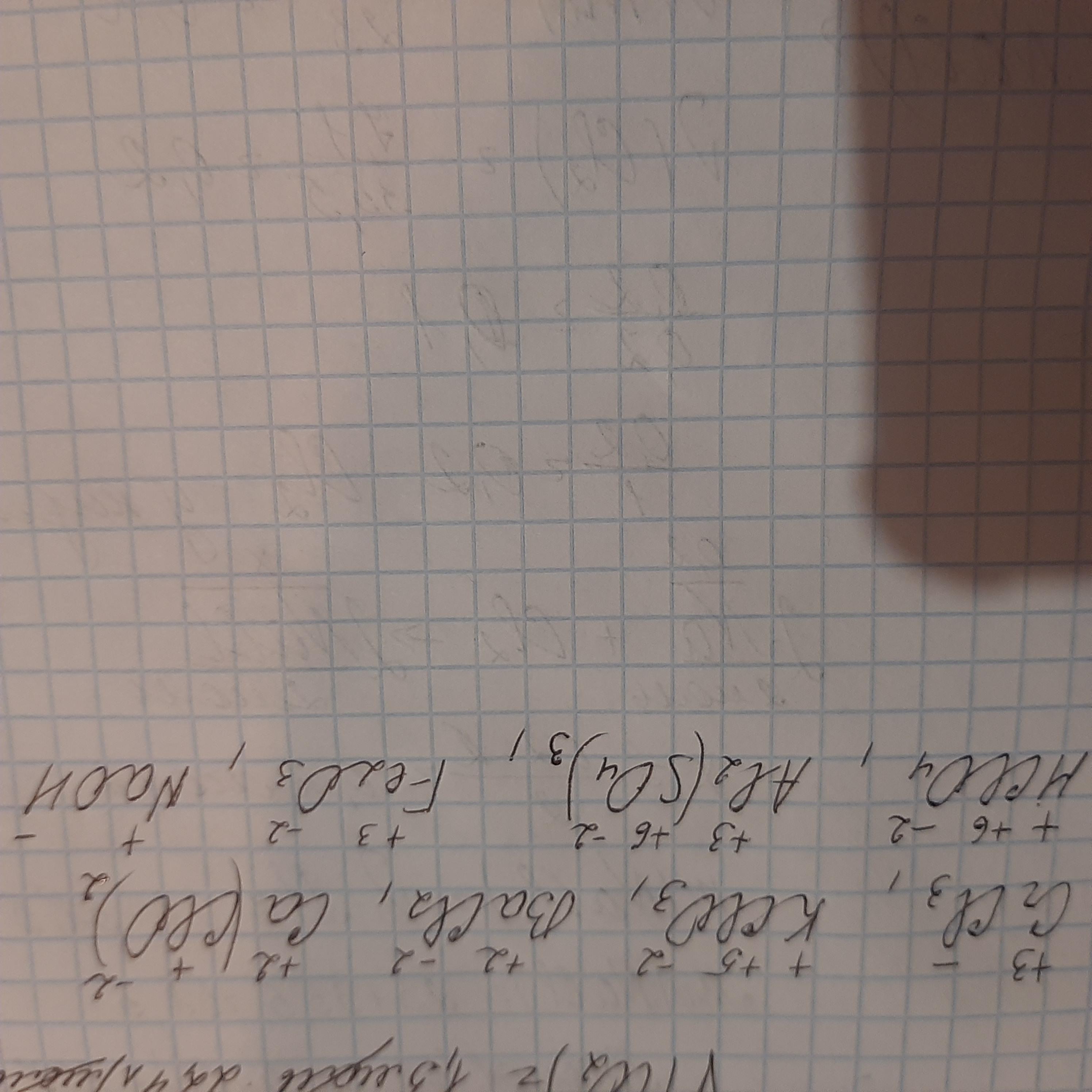 Cr³⁺CI3⁻, K⁺CI⁵⁺O3²⁻, Ba²⁺CI2⁻, Ca²⁺(CI²⁺O²⁻)2, H⁺CI⁷⁺O4²⁻, AI2³⁺(S⁶⁺O²⁻4)3, Fe2³⁺O3²⁻, Na⁺O²⁻H⁺