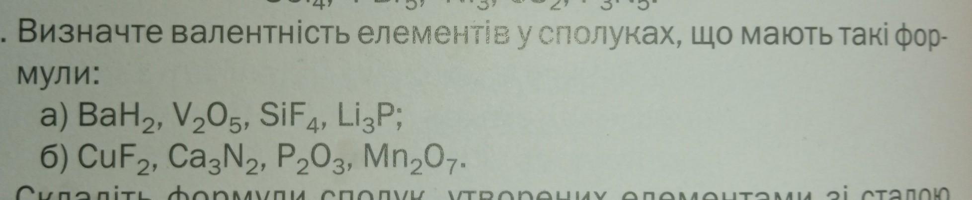 А) ВаН2-у них постоянная валентность у Ва валентность 2,а у Н валентность 1;V2O5-валентность Оксигена 2,а Ванадия 5;SiF4 валентность Si 4,F ;1Li3P валентность Li 1,P 3