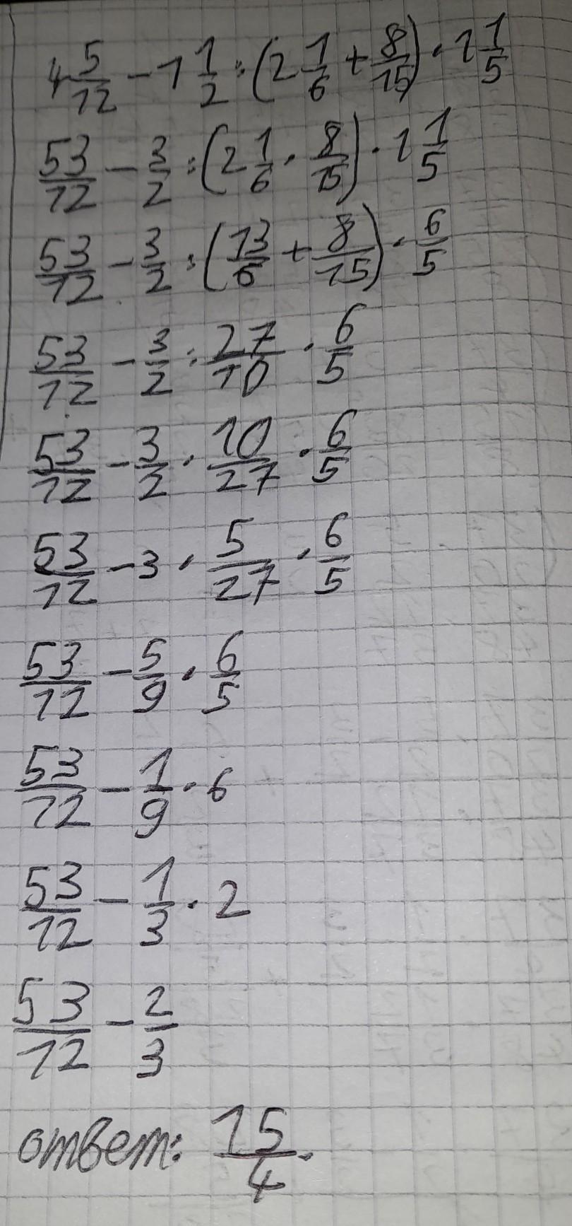 5 решите 4 5/12-1 1/2:(2 1/6+8/15)×1 1/5 уравнение ЭТО УРАВНЕНИЕЕ ПОЖАЛУЙСТА ЭТО ОЧЕНЬ СРОЧНОО!!!!!!!!!!!!!!