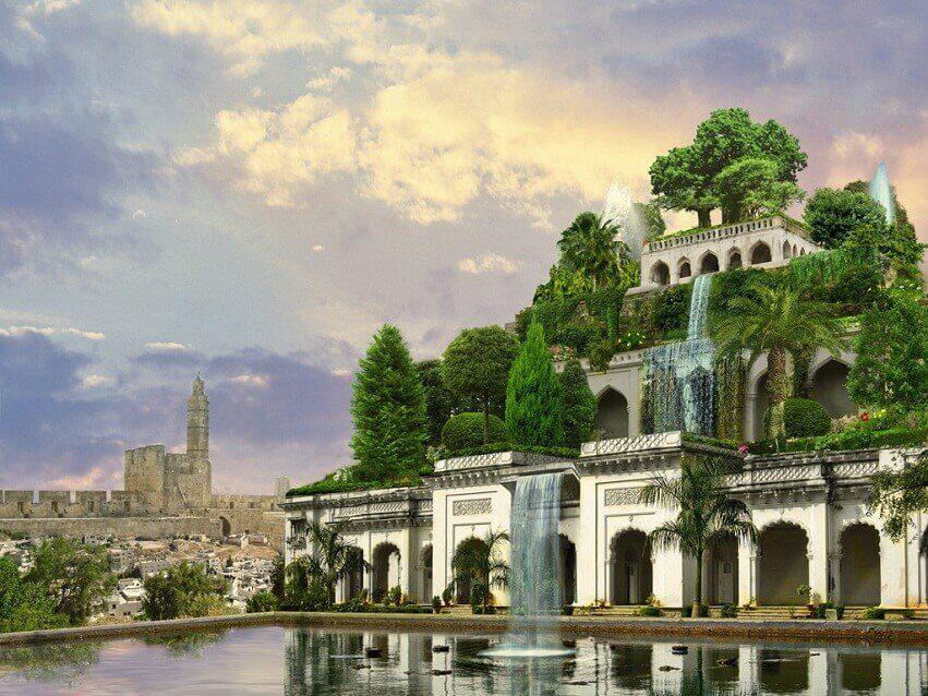 На фото изображены Висячие сады Семирамиды, одно из семи чудес света, расположенные в городе Вавилоне, (древняя Мессопотамия), в Халдейском царстве (ответ Г)