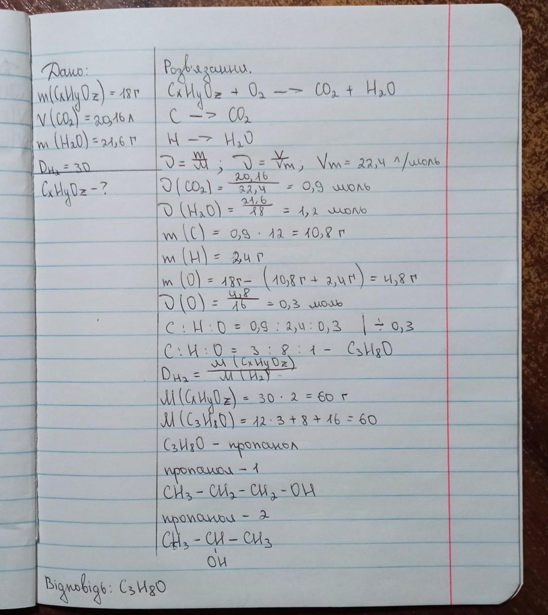 40 балов!!! Внаслідок спалювання органічної речовини масою 18 г утворилося 20,16 л карбон (IV)оксиду( н.у.) і 21,6 г води . Відносна густина пари цієї речовини за воднем становить 30. Вивести молекулярну формулу речовини, скласти структурну формулу. Запропонувати молекулярні формули двох її гомологів.