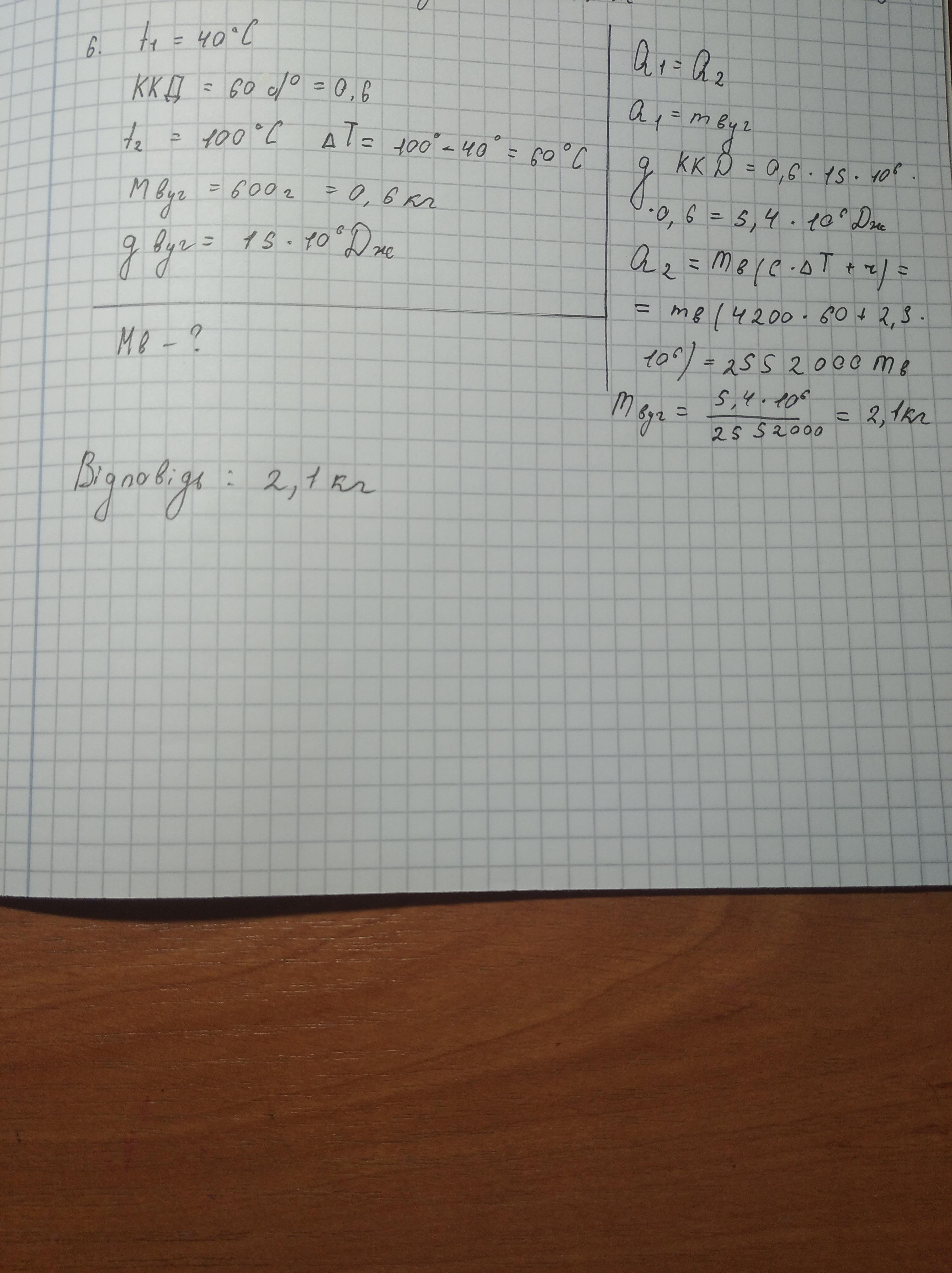 - Посудину з водою за температури 40 deg * C поставили на піч із ККД 60%. Визнач масу води, яку можна перетворити на стоградусну пару за рахунок повного згоряння 600 г деревного вугілля. Теплоємністю посудини знехтуй. Щоб розв'язати задачу, скористайся довідковими таблицями.
