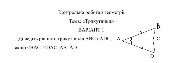 1.Доведіть рівність трикутників АВС і АDС,якщо <ВАС=