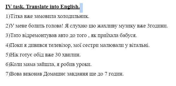 7.Vova completed his homework before 7 o'clock.