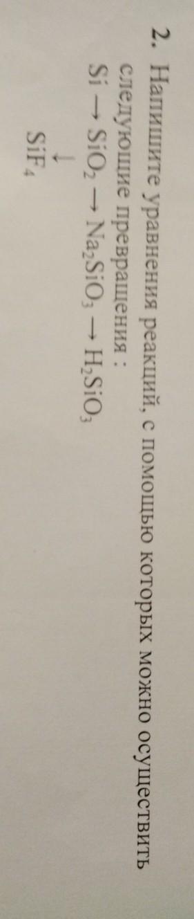 2. Напишите уравнения реакций, с помощью которых можно следующие превращения: Si SiO₂ → Na₂SiO3 → H₂SiO, - - SiF4