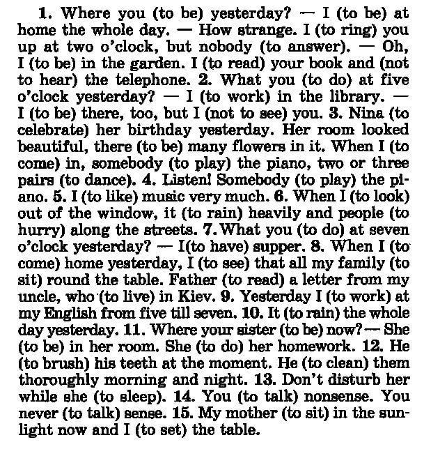 o'clock yesterday? I(to have) supper. 8. When I (to