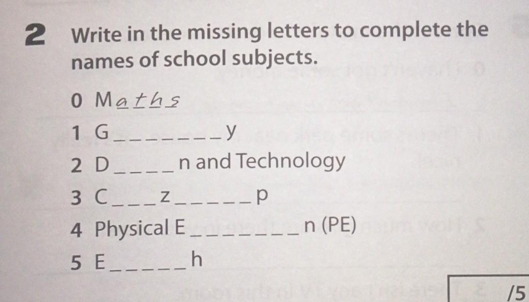 1 Geography, 2 Design and technology, 3 Citizenship, 4 Physical education, English