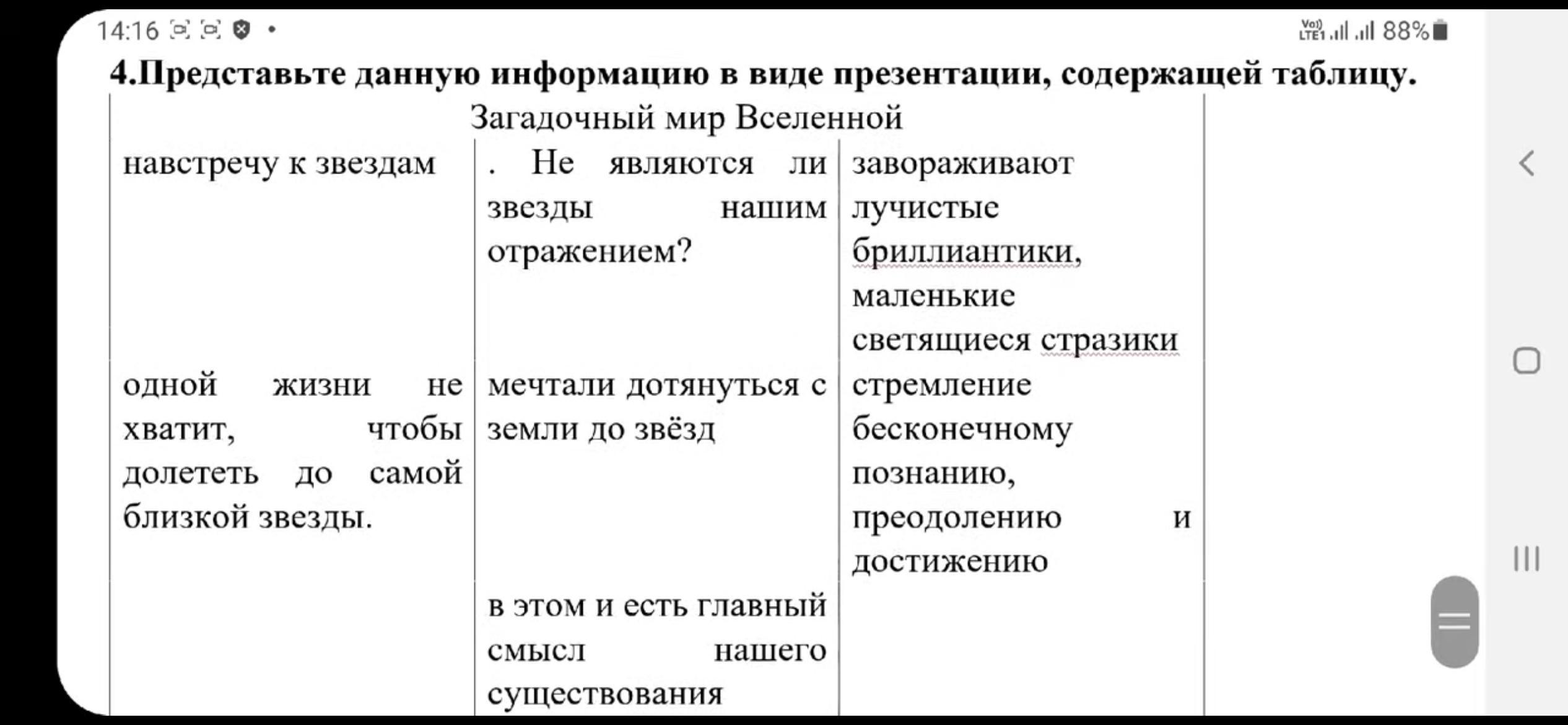 «Через тернии к звездам» Письмо 4.Представьте данную информацию в виде презентации, содержащей таблицу.