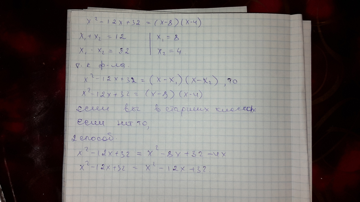 x^2 - 12x + 32 = (x - 8)(x - 4)
