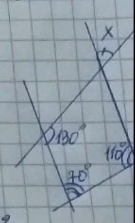 Тому що:кут який зліва від кута х суміжний з ним, а поскількі цей кут 110 градусів а суміжні кути разом дорівнюють 180 градусів то 180-110= 70 градусів