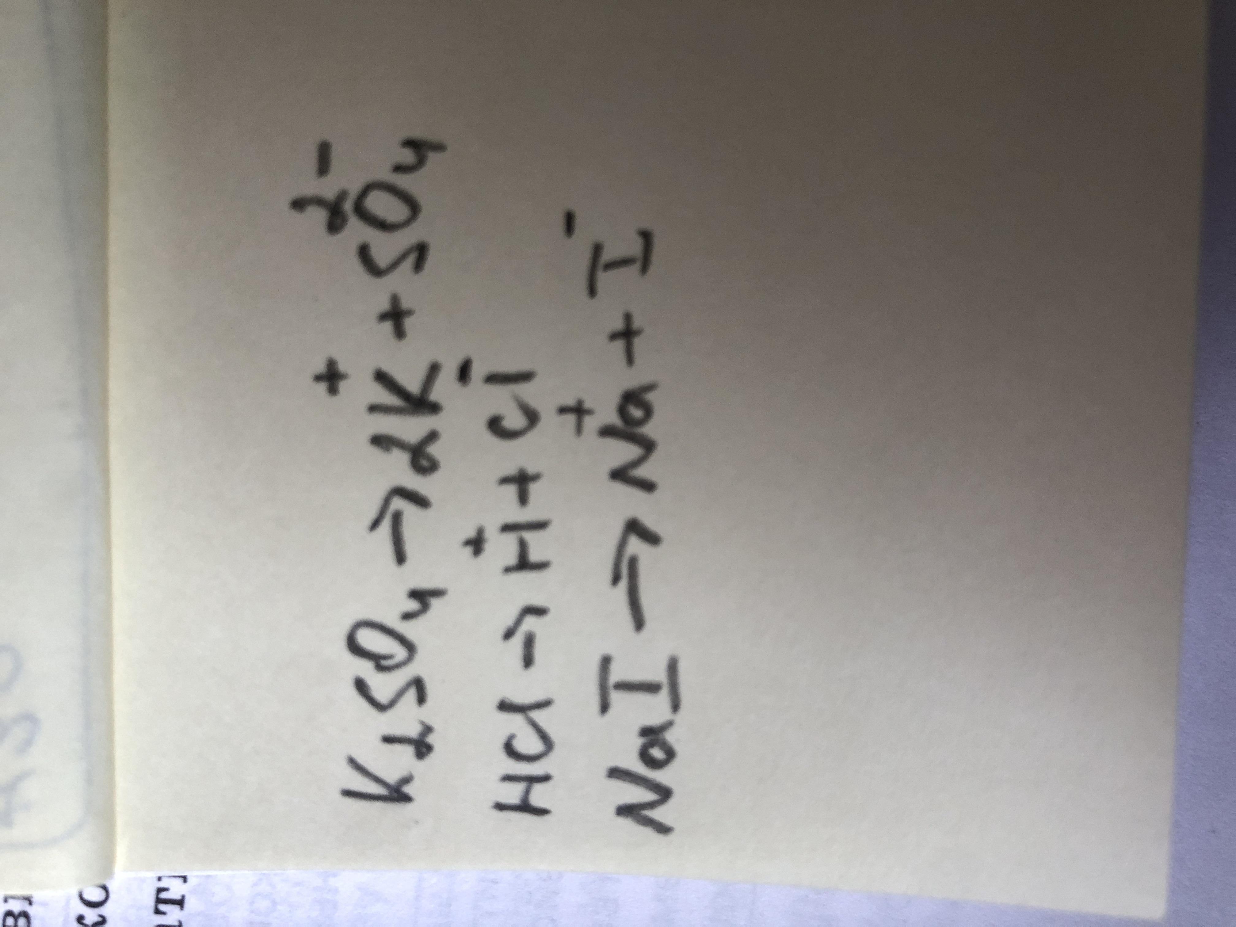 наведених речовин виберіть сильні електроліти: HCl, Nal, K2SO4, H2O, МnO2, N2. Напишіть рівняння їх електролітичної дисоціації.