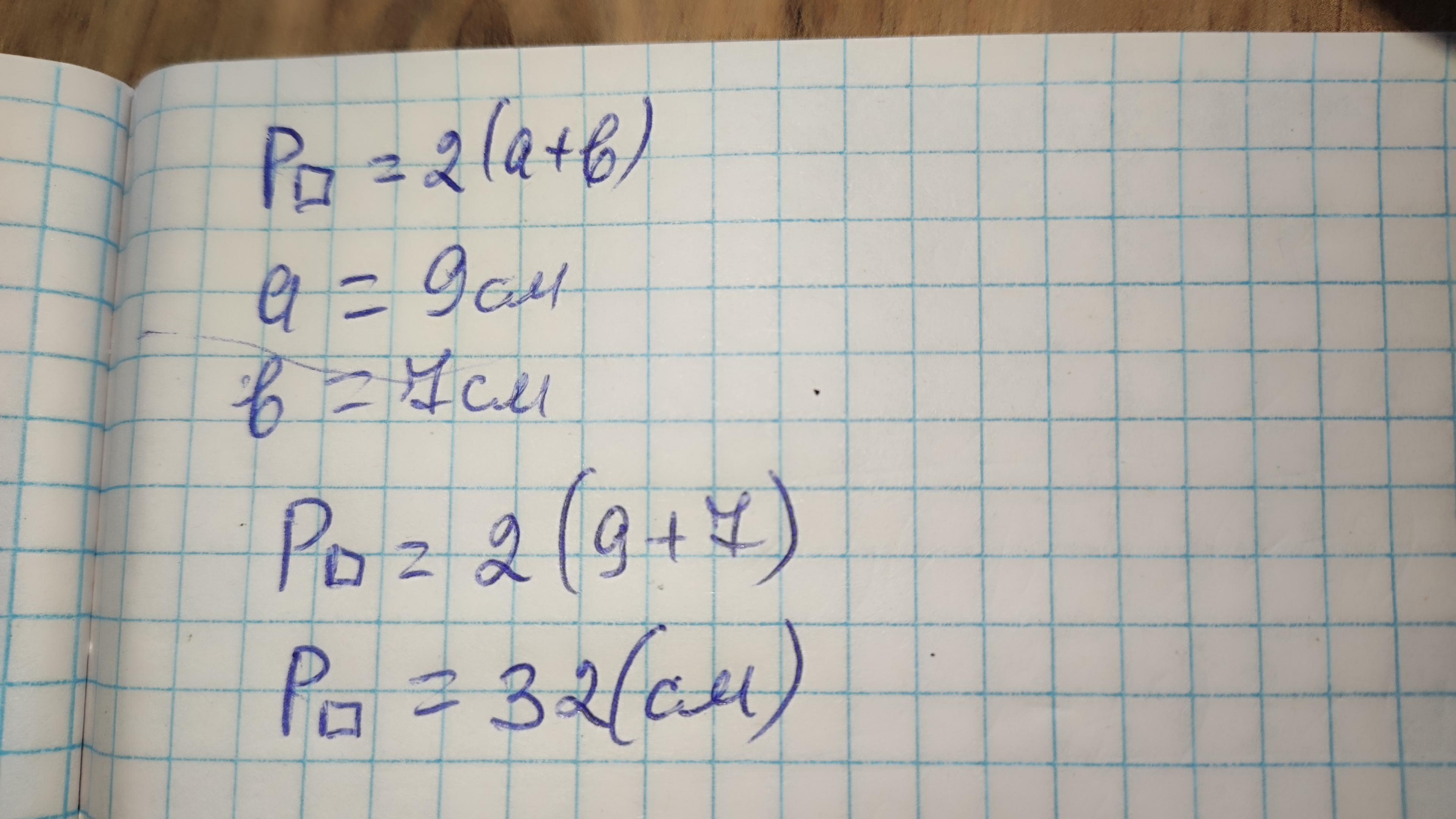 Р=(9∙2)+(7∙2)=18+14=32см