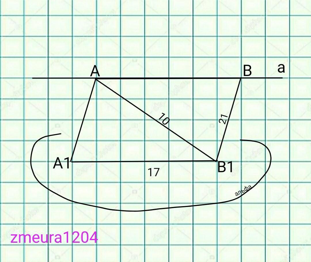 Пряма a паралельна площині α. Через точки A і B прямої a проведено паралельні прямі, що перетинають площину α в точках A1 і B1 відповідно. Знайти площу чотирикутника AA1B1B, якщо A1B1 =17 см, AB1=10 см, BB1=21 cм.