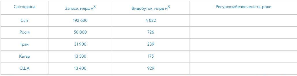 1. Світ: 192 600 млрд м³ ÷ 4 022 млрд м³ = 47 років