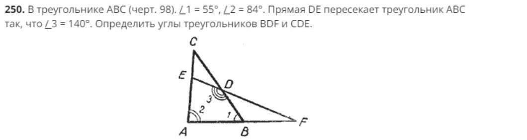 ∠С = 180° - ∠1 - ∠2 = 180 - 55 - 84 = 41°