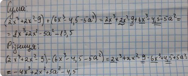 (7x³+3x²-2x-9) та (9x⁴ - 4x³- x²+5 +5x)