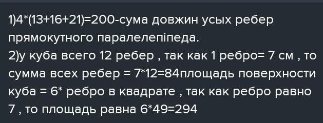 Знайдіть суму довжин усіх ребер і площу поверхні прямокутного паралелепіпеда, виміри якого дорівнюють 7 см, 10 см і 11 см
