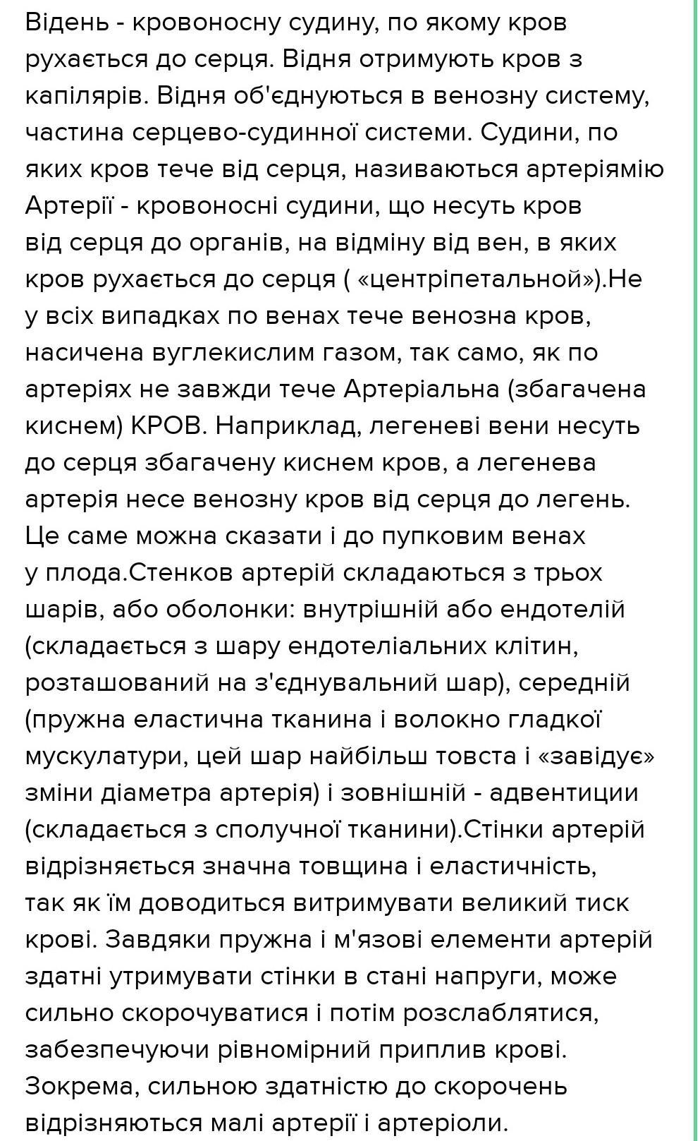 1. Порівняйте будову стінок артерій та вен. Поясніть причини відмінностей між