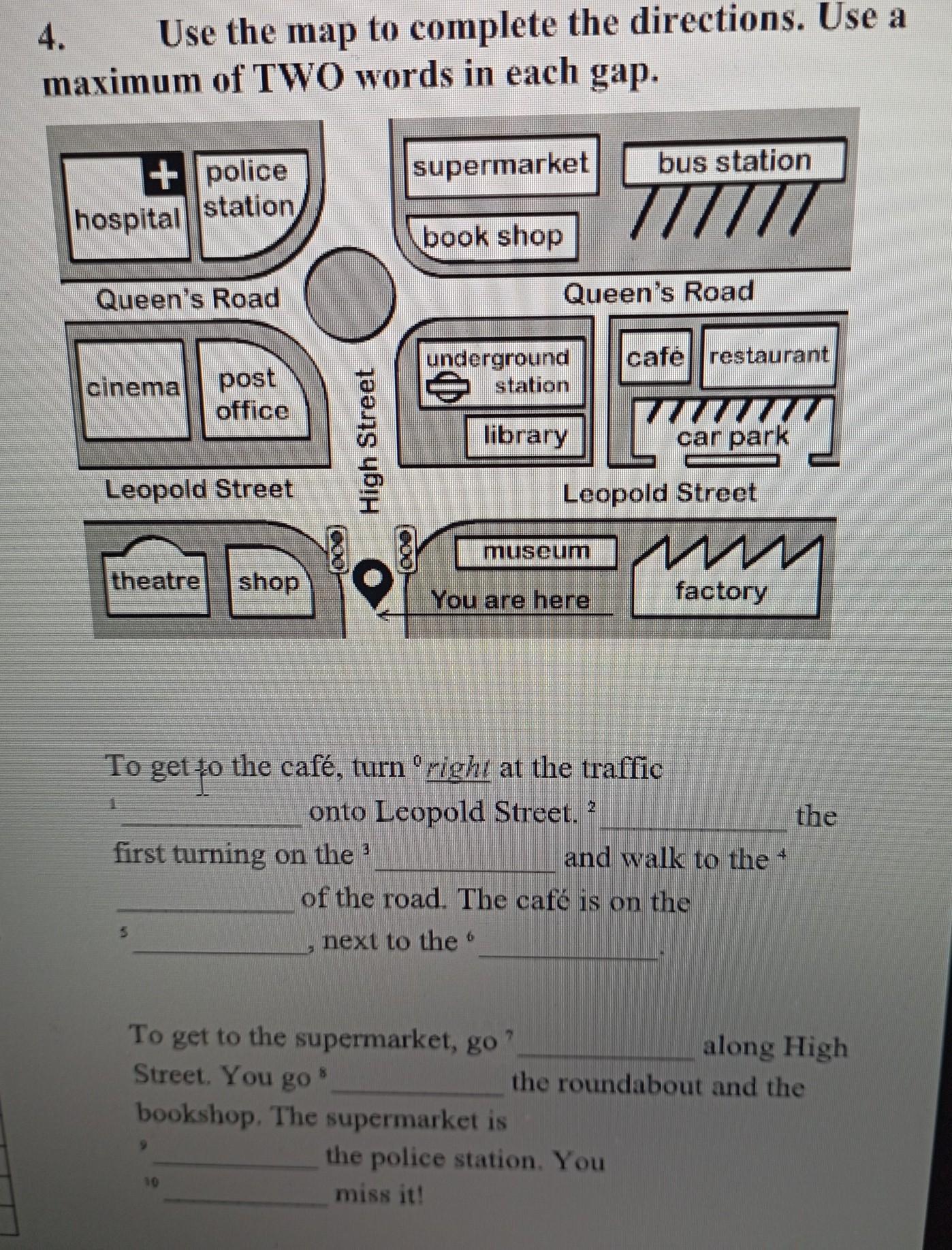 ДАЮ 100 БАЛОВ4. Use the map to complete the directions. Use a of TWO words in each gap. maximum