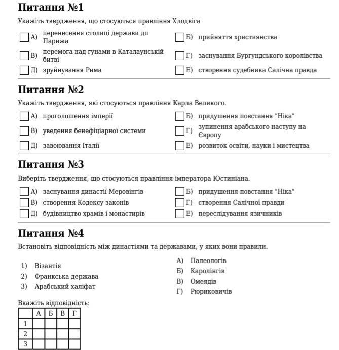- 4-1.Візантія-А)Палеологів,2.Франкська держава-Б)Каролінгів,3.Арабський халіфат-В)Омеядів