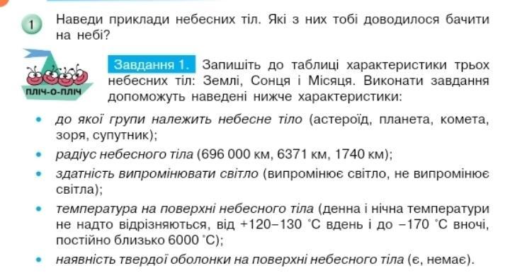 Ответ:1.Планети 2.Астероїд 3.Сонце 4.венера або Марс 5 є наприклад Місяць або Луна