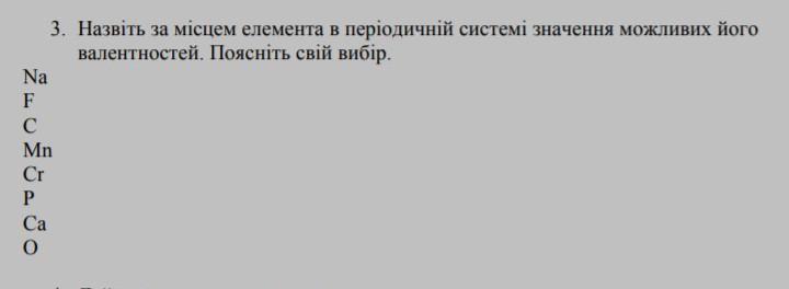 Назвіть за місцем елемента в періодичній системі значення можливих його валентностей. Поясніть свій вибір.