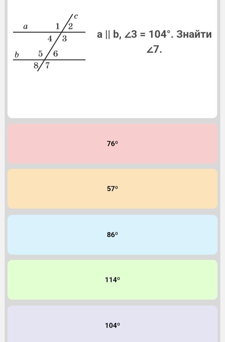 ∠7=104°