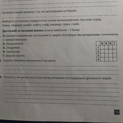 7. Встановіть правильну послідовність шарiв літосфери під материками, починаючи