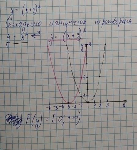 побудуйте графік функції y=(x+3)^+2 знайди область значень цієї фунції