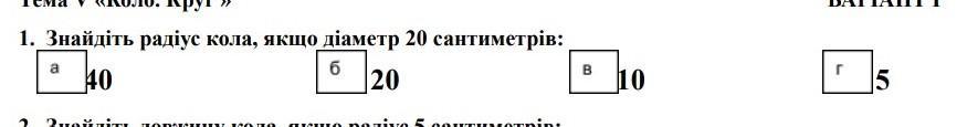 1. Знайдіть радіус кола, якщо діаметр 20 сантиметрів.