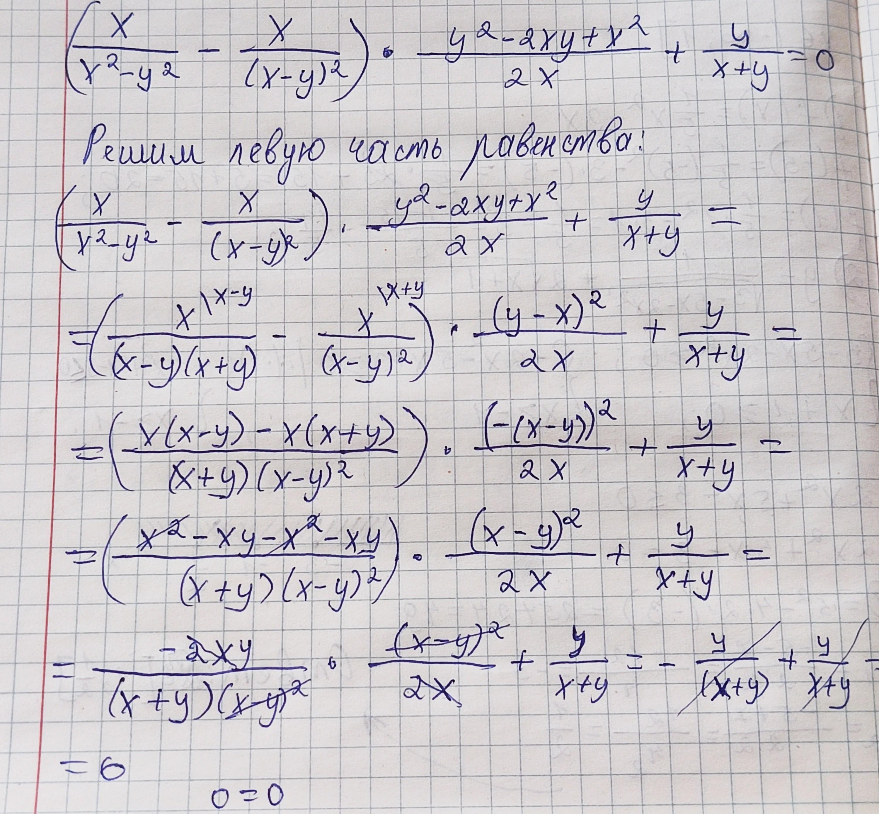 (x/(x ^ 2 - y ^ 2) - x/((x - y) ^ 2)) . y^ 2 -2xy+x^ 2 2x + y x+y =0
