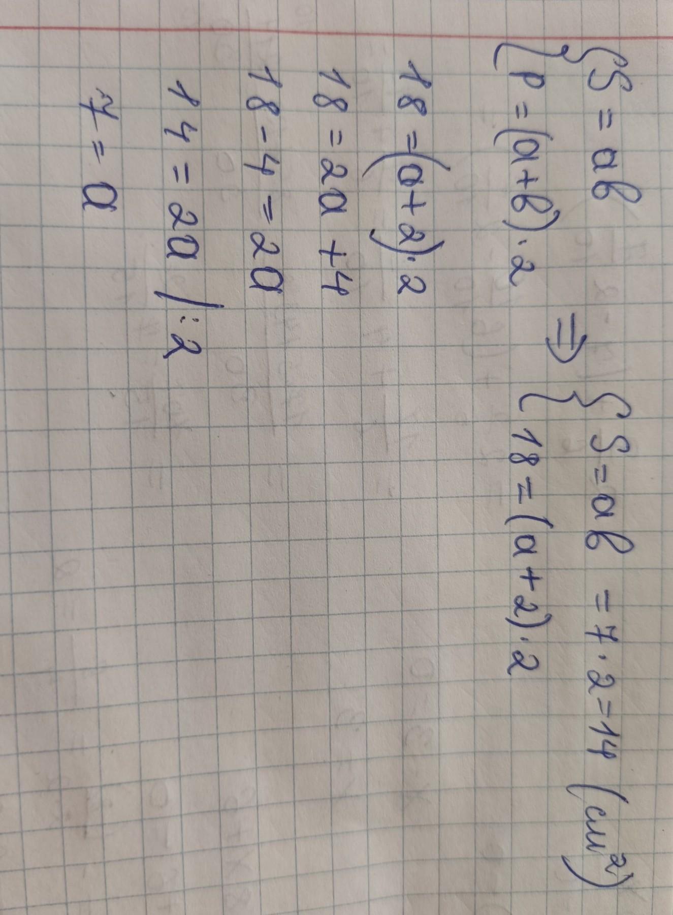 6. Вычисли площадь прямоугольника, если его периметр 18см, а ширина - 2см. A) 14 cмВ) 18 см С) 21 см D) 14 см²