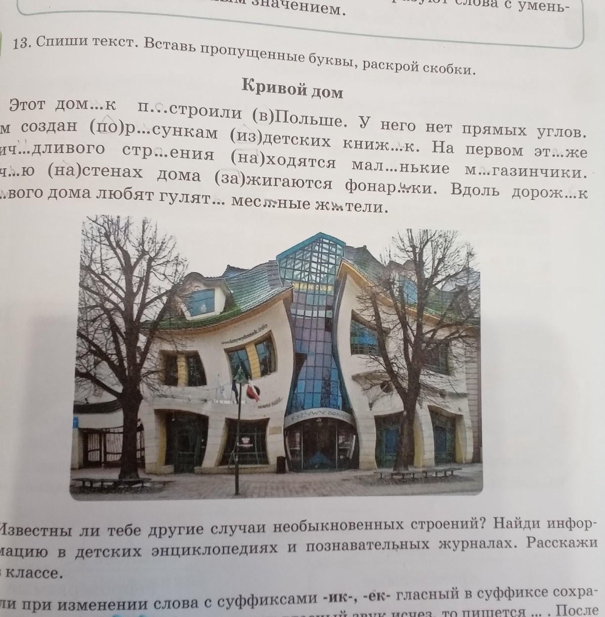 домик; построили; в_П...; по_рисункам; из_; книжек; этаже причудливого строения находятся маленькие магазинчики. Ночью на_стенах дома зажигаются фонарики; дорожек; ...?... ; гулять местные жители
