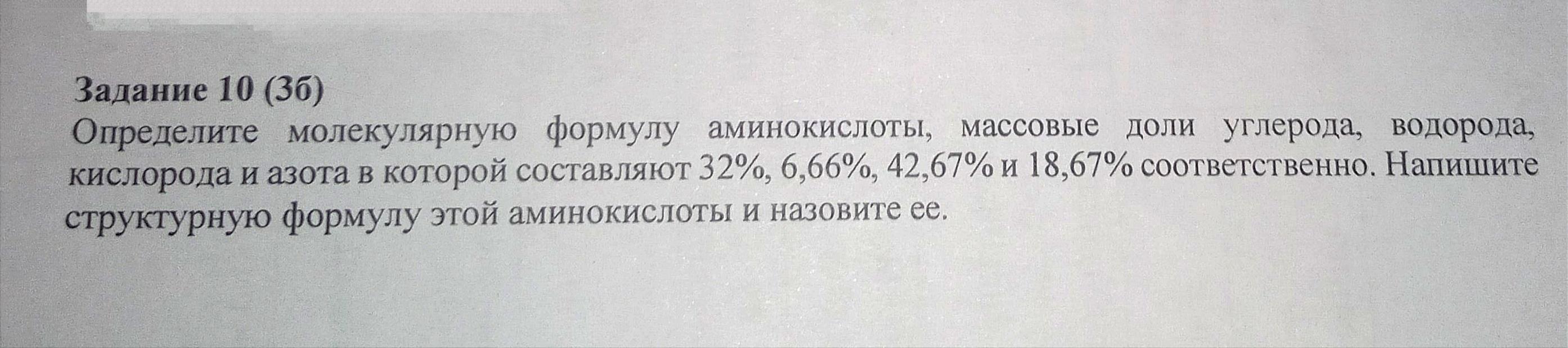 Определите молекулярную формулу аминокислоты, массовые доли углерода, водорода, кислорода и азота в которой составляют 32%, 6,66%, 42,67% и 18,67% соответственно. Напишите структурную формулу этой аминокислоты и назовите ее.