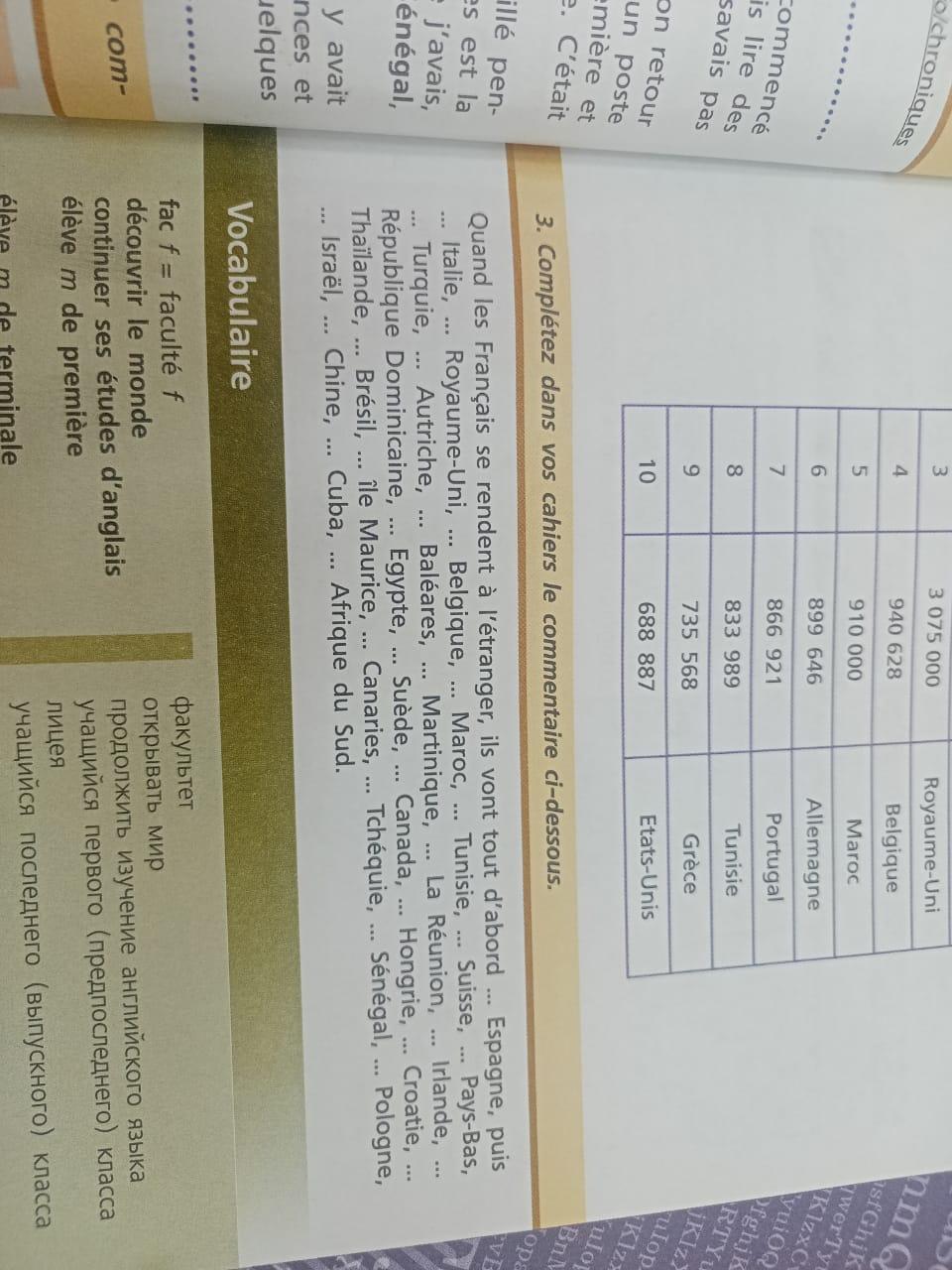 quand les Français se rendent à l'étranger, ils vont tout d'abord en Italie, au Royaume-Uni, en Belgique, au Maroc, en Turquie, en, au Baléares, en Martinique, à La Réunion, en Irlande, à République Dominicaine, en Egypte,en Suède,au Canada.En Hongrie, en Croatie,au Thailande, en Brésil,en ile Maurice,aux Canaries,en Tchéquie, au Sénégal,en Pologne, en Israël, en Chine, à Cuba,en Afrique du Sud.En Espagne, puis en Suisse,aux Pays-Bas,en Tunisie,