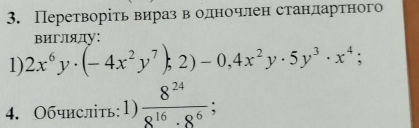 3 . 1) 2x⁶y * ( - 4x²y⁷ ) = - 8x⁸y⁸ ; 2) - 0,4x²y * 5y³x⁴ = - 2x⁶y⁴ .